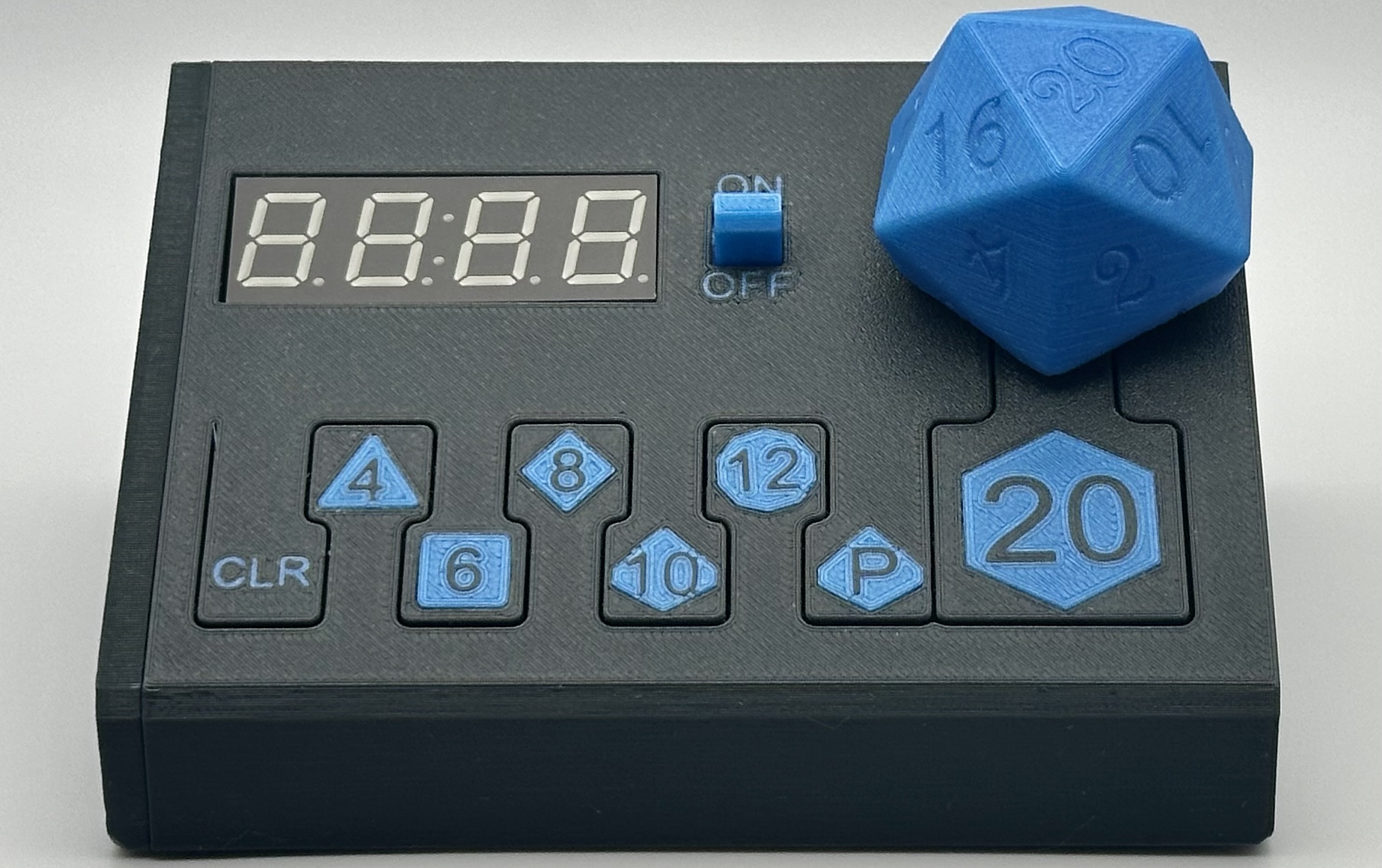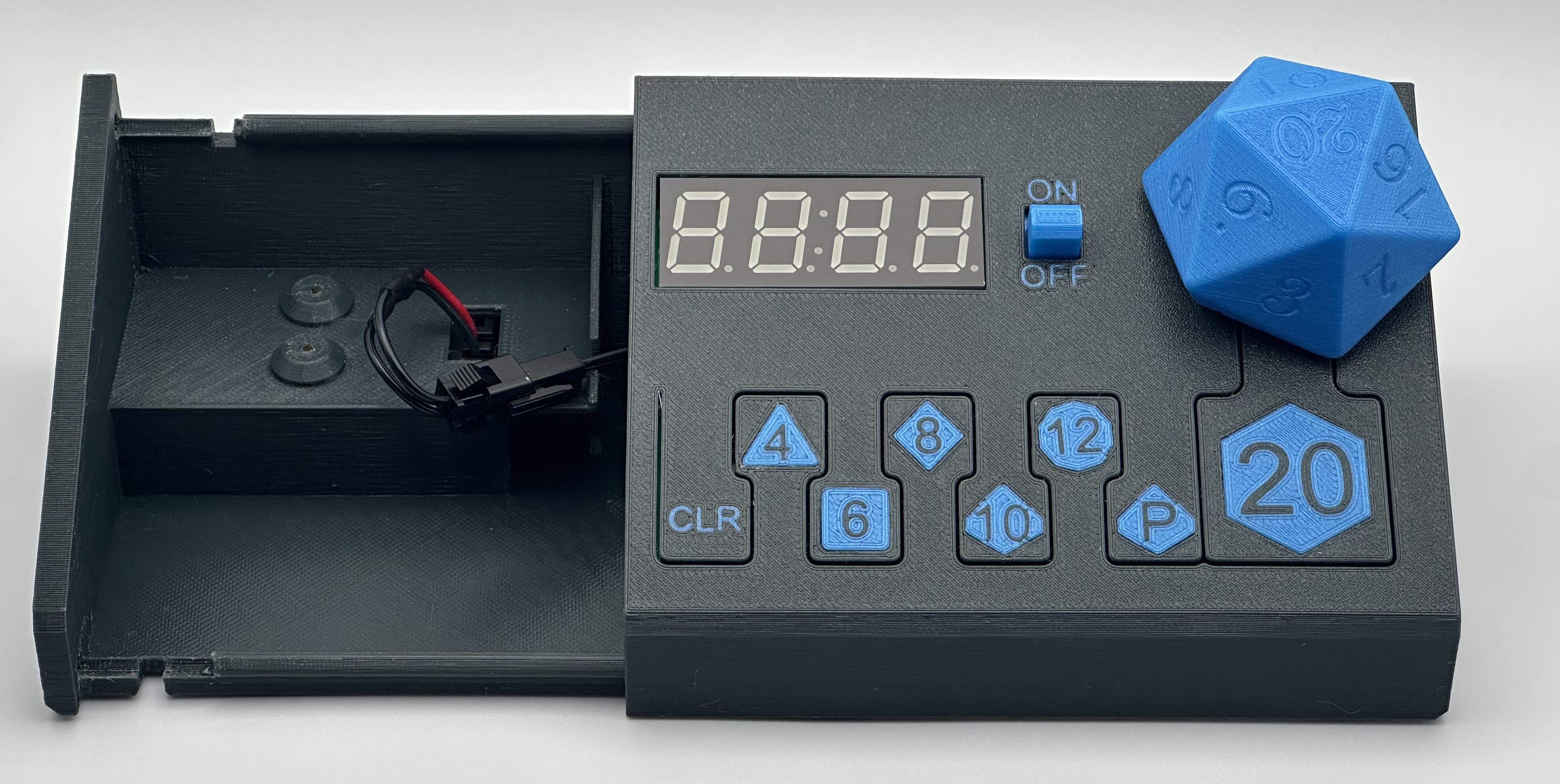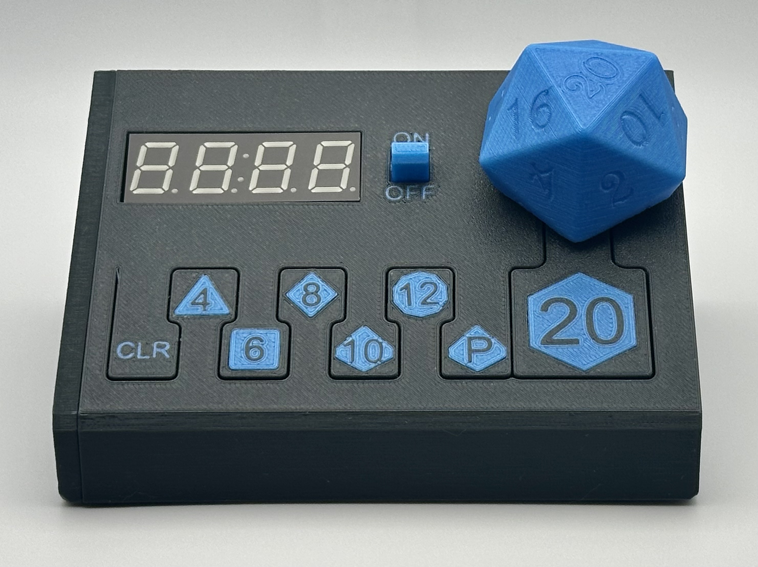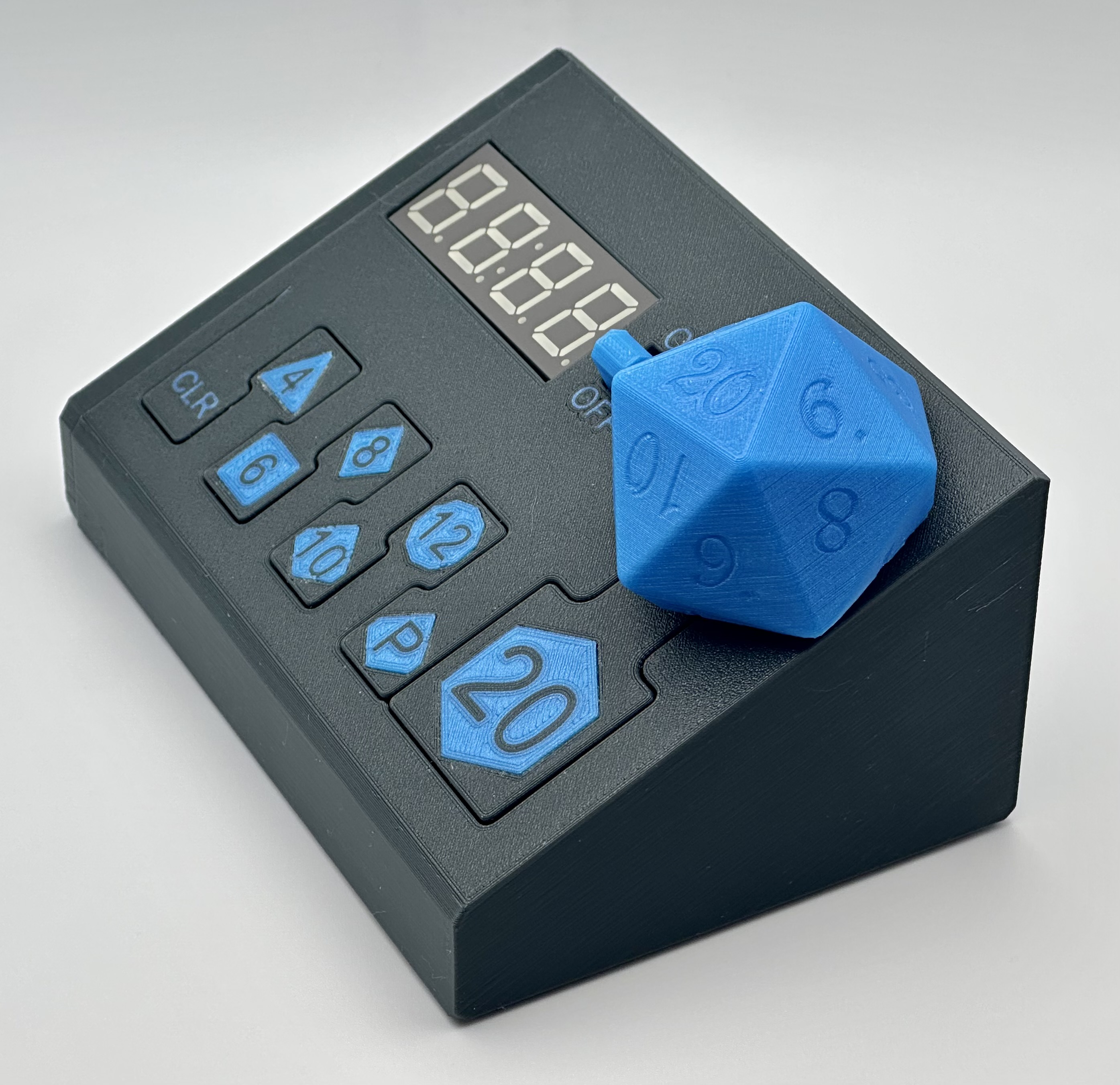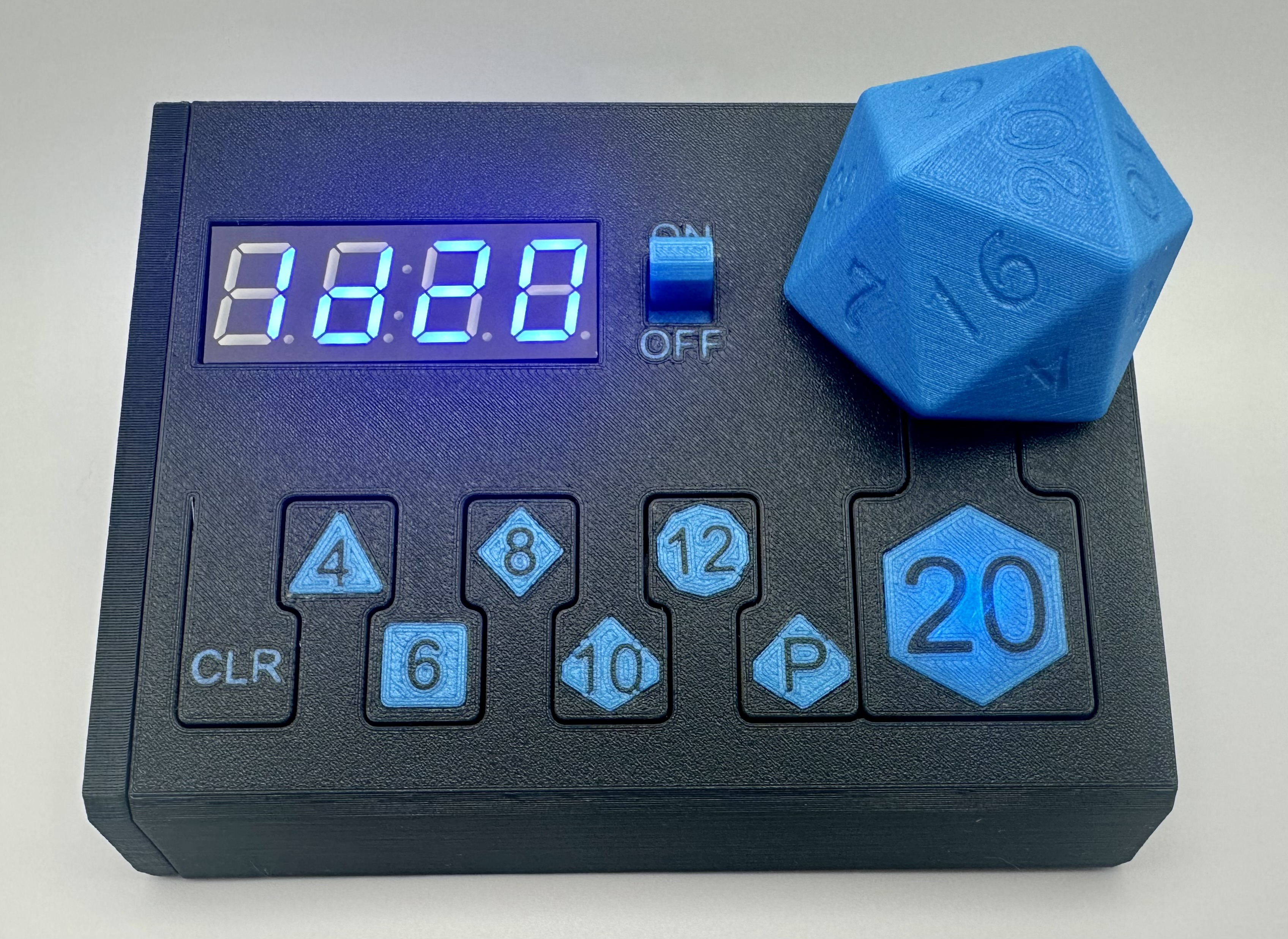 ), simply press the die’s button repeatedly until you reach the desired quantity. The light will flash while selecting. When you’re ready, spin the large D20 again to roll all chosen dice.