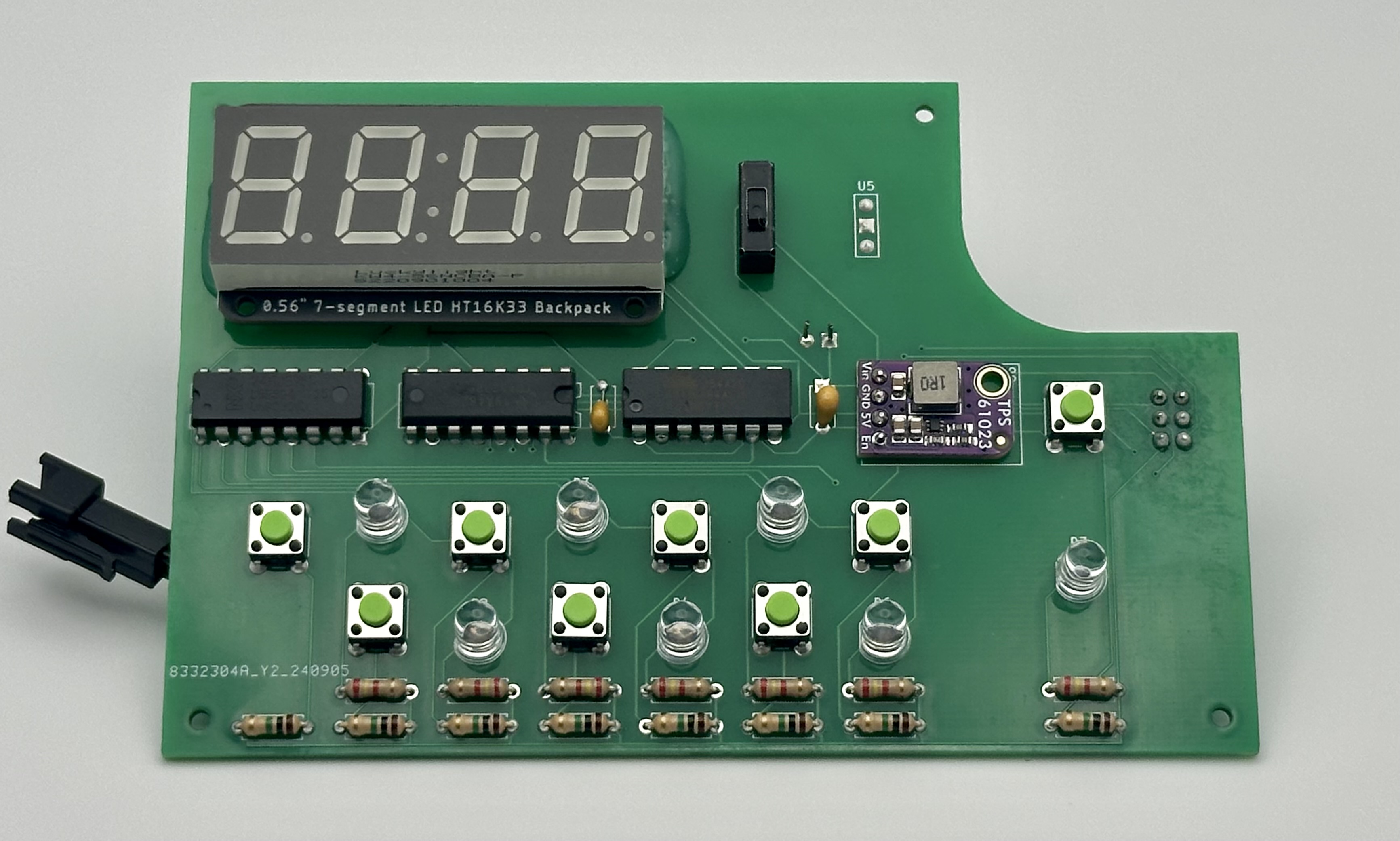 I wanted to handle as most of the electrical engineering myself, while still keeping the project's timeline reasonable. To save on time, I made a compromise by using breakout boards for the boost converter and the 7-segment display. If I do a second revision, I plan to design these components myself, which could potentially reduce the cost per unit while also allowing me to have most of the board assembled at the factory.