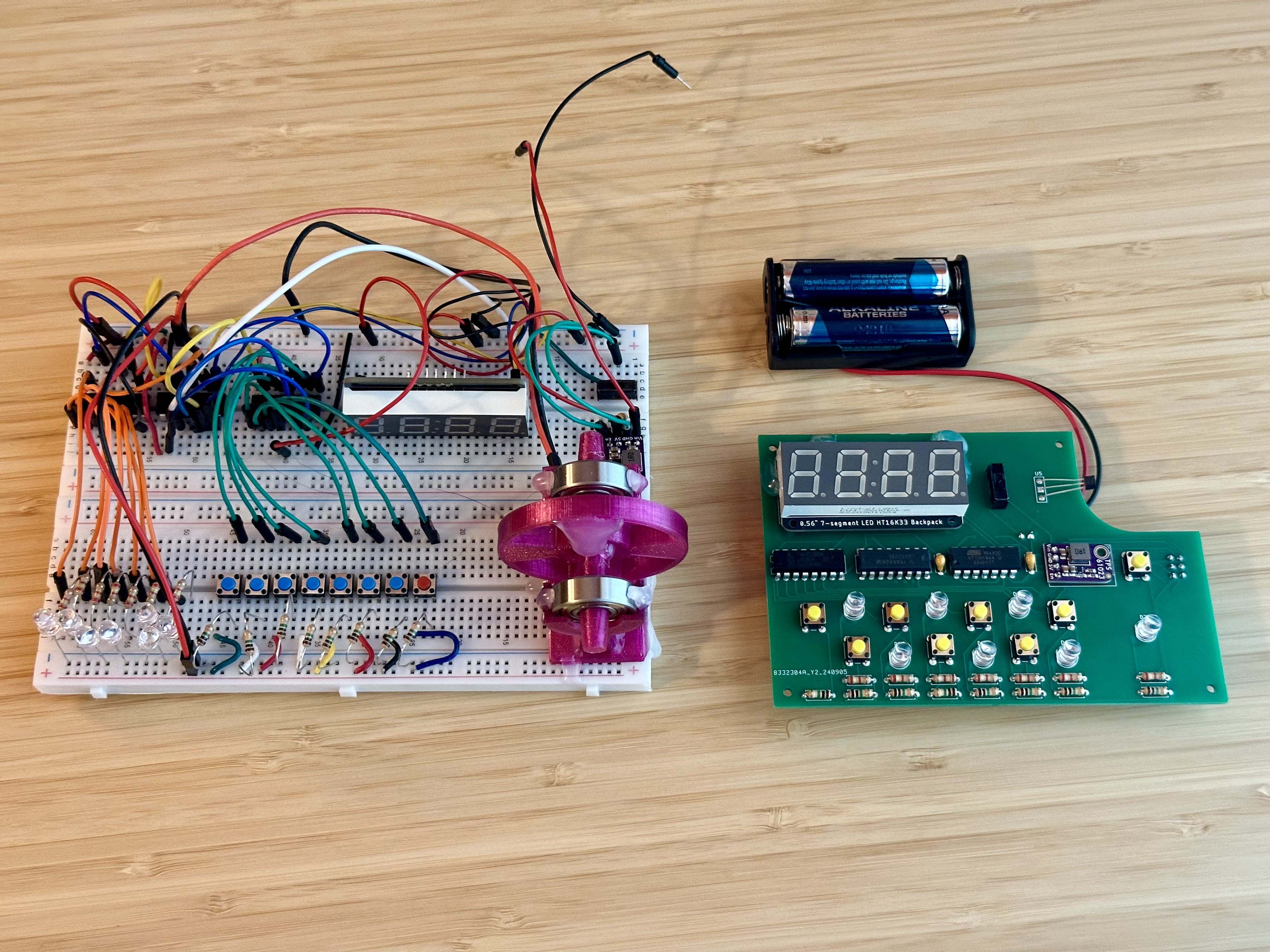 For the software architecture, I used a MVC pattern. This approach allowed for a clear separation of input, state, and output logic. Controllers manage the buttons and Hall effect sensors, views handle the LEDs and 7-segment display, and a single “state” model ties everything together. Overall, this organization worked well, although some controller logic ended up in the state model. I may revisit this in a future iteration to improve the separation of concerns.